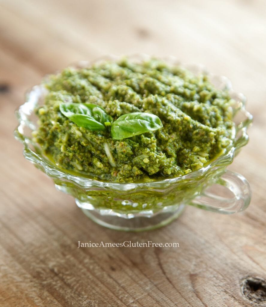 I often purchase fresh pesto already made, particularly when I’m in a hurry, but it is really delicious homemade too. It’s great on things like gluten free pasta, zucchini noodles, gluten free bread, chicken, fish, etc.